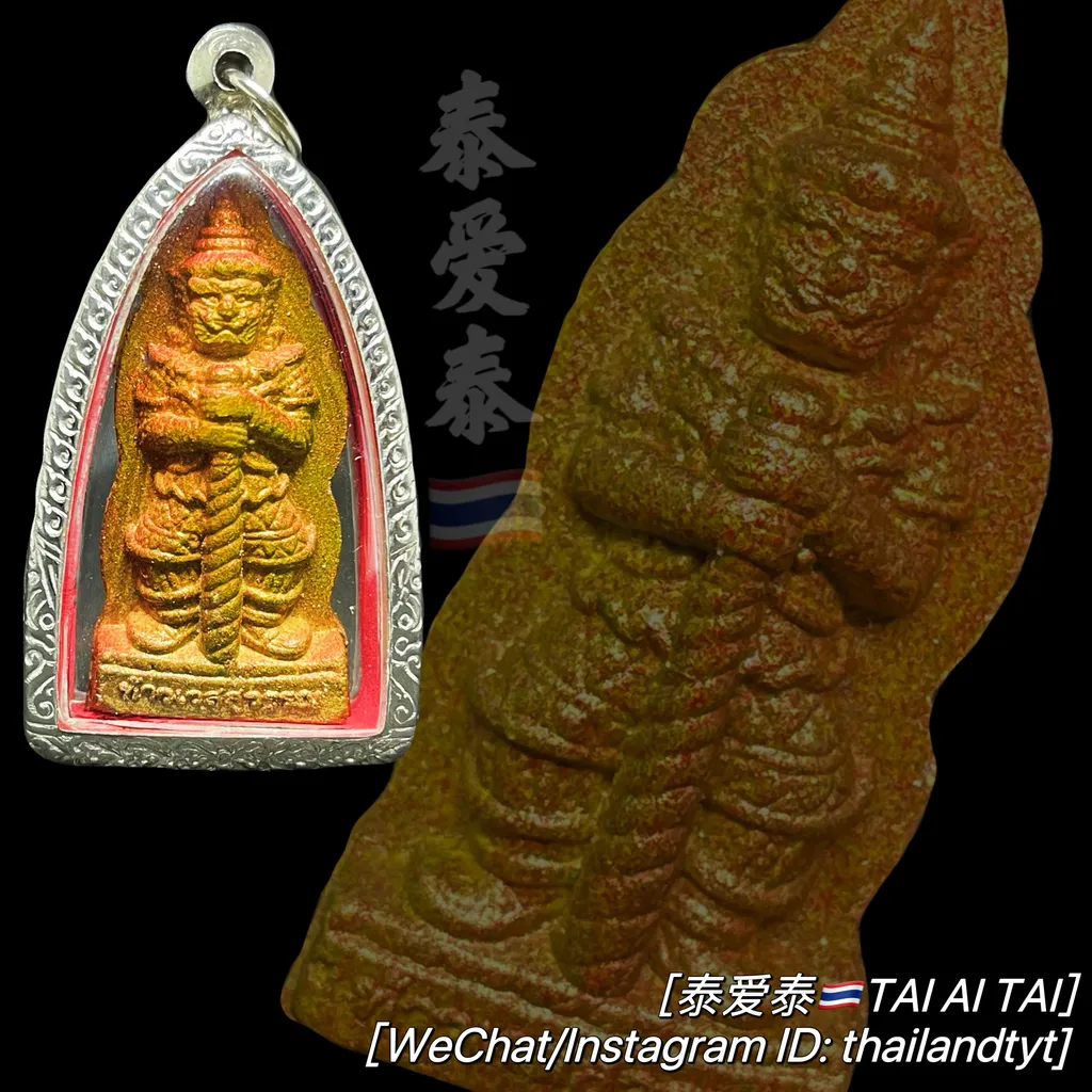 护法鬼王,被泰国人称为夜叉守护神、鬼皇夜叉、鬼王夜叉、夜叉王。鬼王夜叉长相凶恶,画面獠牙,身着盔甲,手持法剑,体型巨大无比。其雕像多见于泰国佛寺大门两则,做佛门重地护守门将,阻止一切妖魔鬼怪、游魂野鬼靠近佛门圣地。